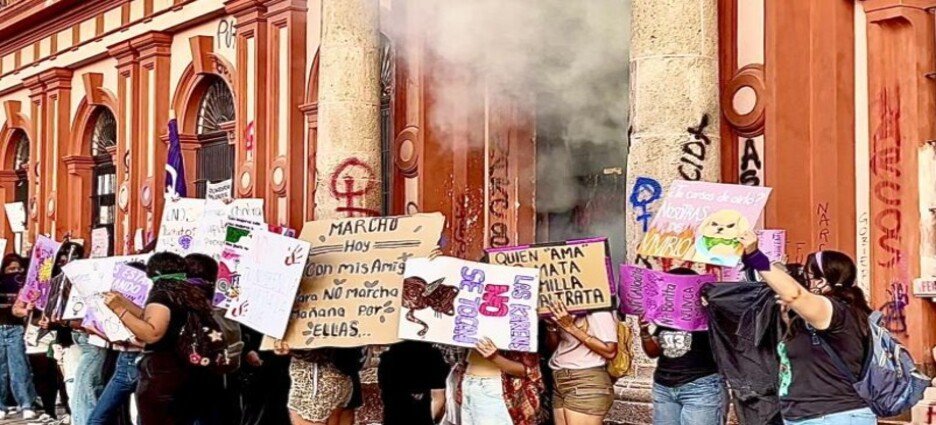 Alrededor de dos mil mujeres participaron este sábado en la marcha con motivo del Día Internacional de la Mujer (8M) en la capital de Colima, movilización que concluyó con la irrupción en el Palacio de Gobierno y daños en el inmueble.