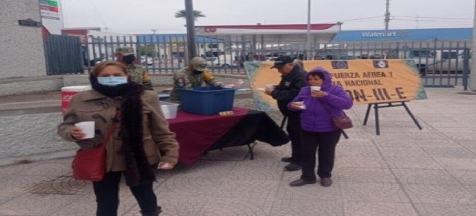 La Guardia Nacional y Ejército Mexicano reparten pan y café a población vulnerable ante las bajas temperaturas en Coahuila