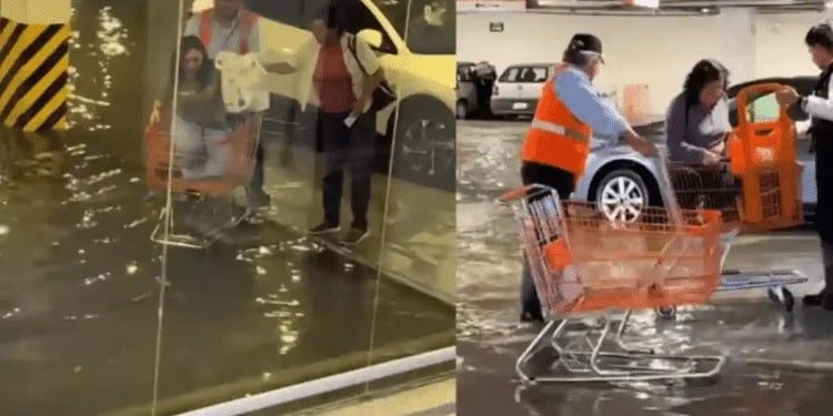 Para que no te mojes te llevan en “carrito de super” hasta tu automóvil